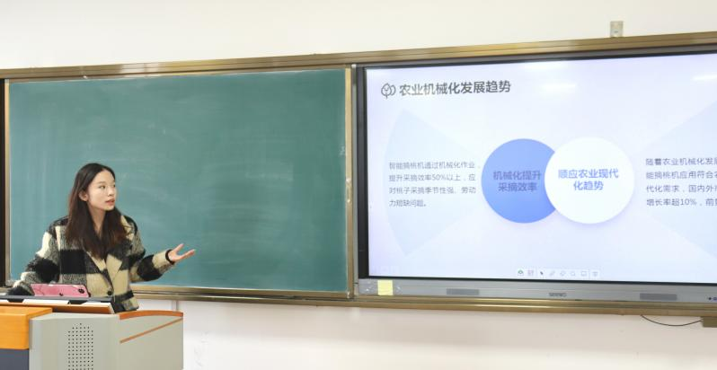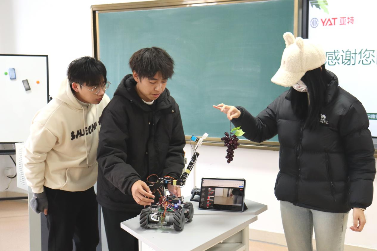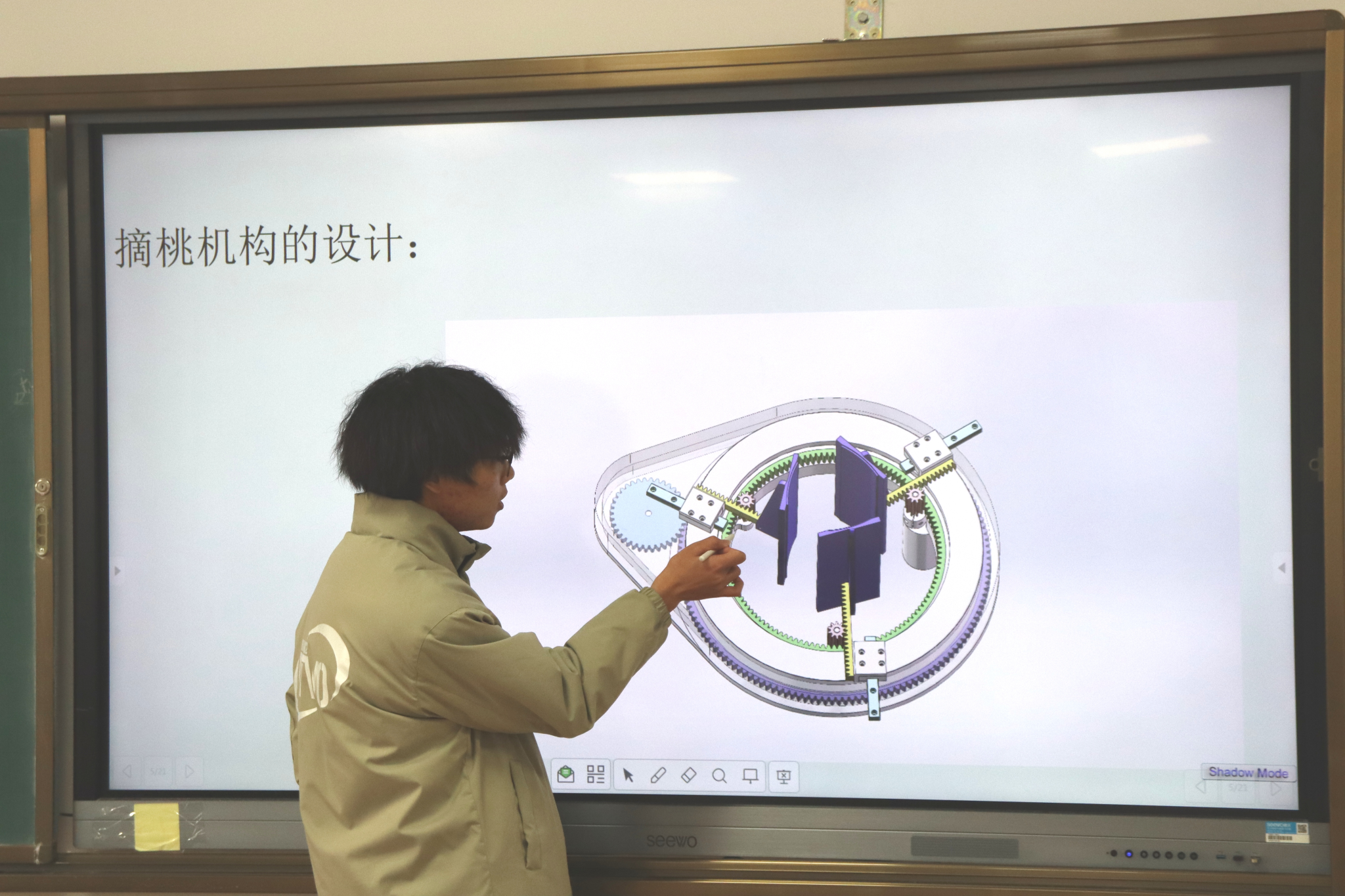 竞赛面向亚特数智产业学院全体在校学生,鼓励跨学科组队参赛,力求通过合作与创新打破学科壁垒,探索智能机械设计与数字技术的深度融合。本届竞赛的选题包括“葡萄采摘机机械结构设计”“智慧摘桃机整体设计”“现代农机智慧充电方案设计”等,聚焦农业机械化与智能化领域,充分体现了智能技术等时代特征。