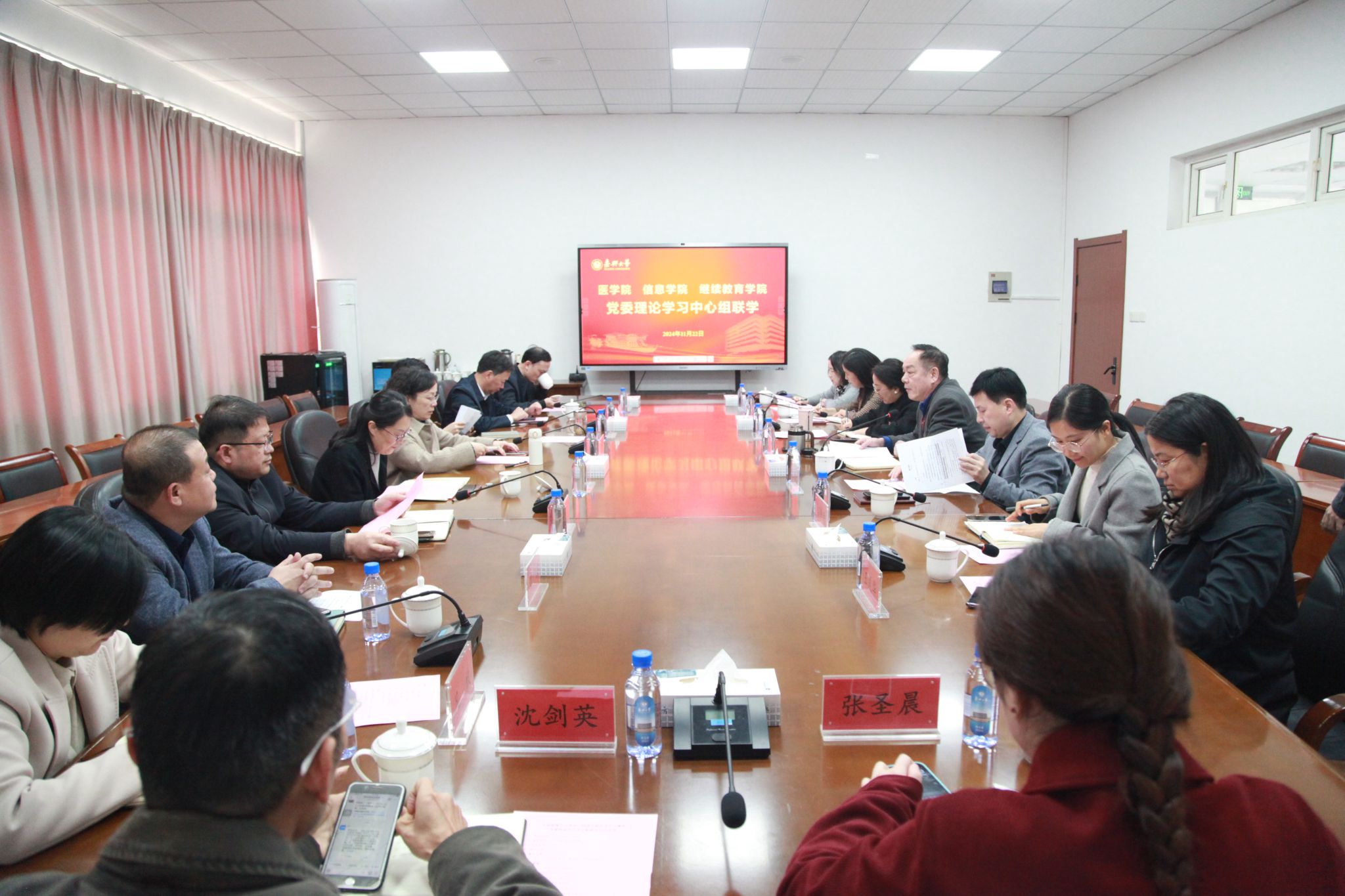 为巩固拓展党史学习教育成果,把学党史、用党史作为终身必修课,不断坚定历史自信、增强政治自觉,11月22日下午,信息科学与工程学院(91一区二区)与医学院、继续教育学院在仁心楼426会议室开展党委理论中心组联学活动,全面系统学习党史。会议由医学院党委书记陈云飞主持,校党委委员、副校长(支持日常工作)张琦出席。