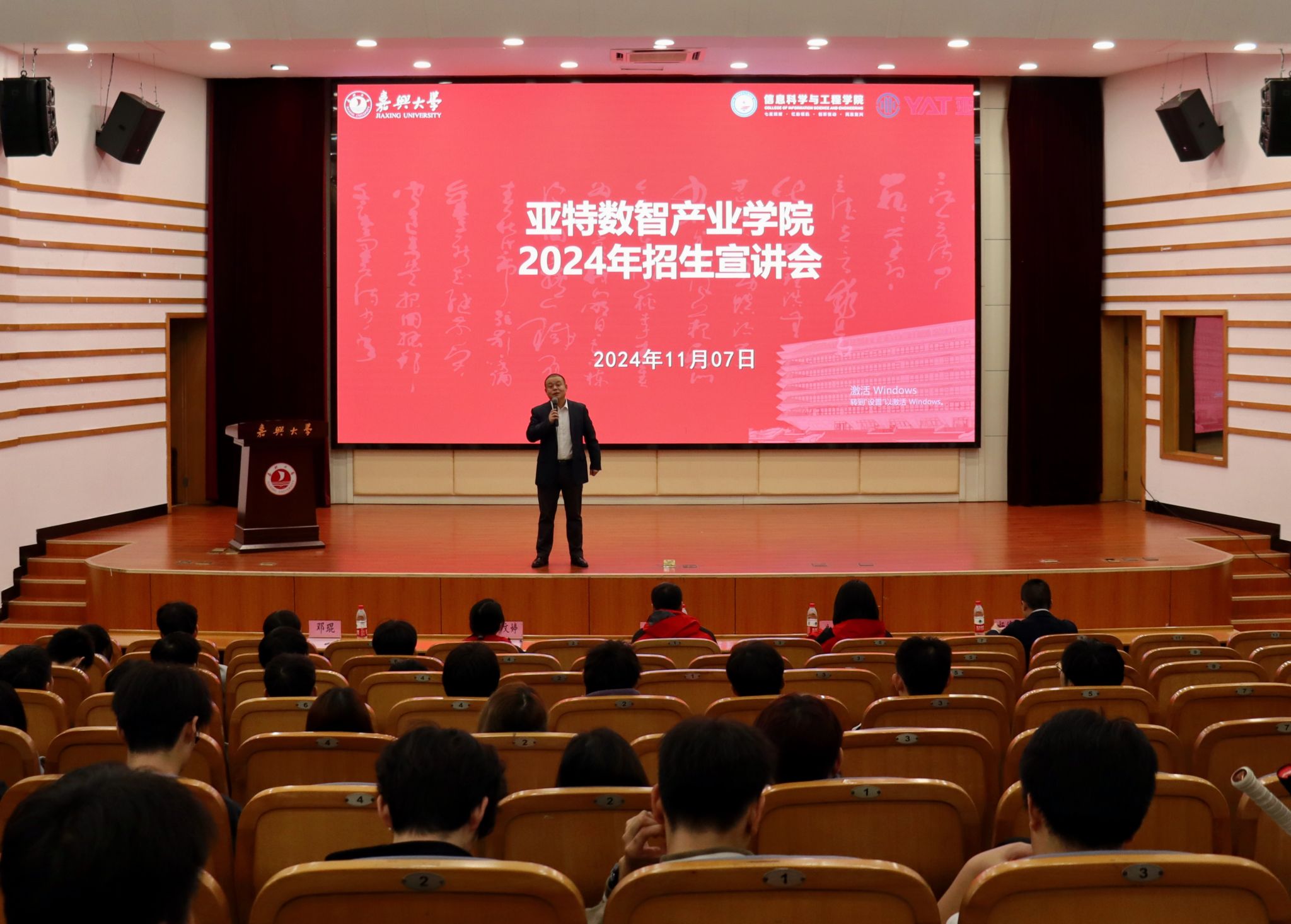 为进一步加深学生对嘉兴大学亚特数智产业学院的认识,深化校企合作关系,2024年11月7日晚学院在嘉兴大学TCL报告厅举办了“亚特数智产业学院2024年招生宣讲会”。本次宣讲会由信息科学与工程学院副院长邓琨主持。