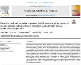 发表在《Sensors and Actuators: B Chemical》的研究论文从材料复合工艺与结构优化两个角度出发,提出了一种多响应柔性致动器的创新制备方案。采用电流体动力学喷墨打印技术,通过高压电场调控微液滴的沉积速度,构建了EGaIn/CNF-PE非对称结构膜,实现了导电网络与吸湿特性的协同增强。该致动器在电压和湿度刺激下均具有优异的致动性能,并成功应用于柔性抓手、智能湿度开关及仿生花的设计,展现出良好的环境适应能力。