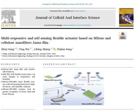 近日,我校91一区二区(机器人工程学院)张礼兵、吴婷教师团队在多响应柔性致动器研究方面取得连续进展,自2025年1月以来,团队先后在《Sensors and Actuators: B Chemical》(中科院一区TOP,影响因子:8.0)和《Journal Of Colloid And Interface Science》(中科院一区TOP,影响因子:9.4)期刊发表论文2篇。嘉兴大学与浙江理工大学联合培养2022级硕士研究生宋智齐为第一作者,嘉兴大学吴婷和张礼兵老师为共同通讯作者。