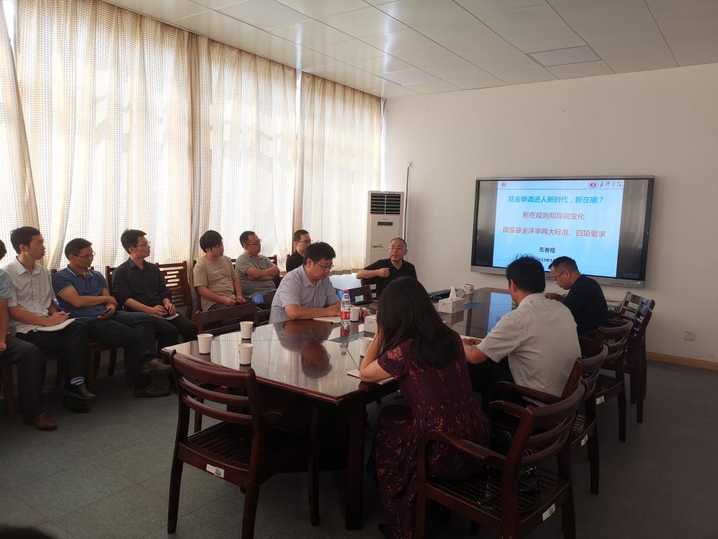 左春柽院长在会上讲解了“国家基金评审两大标准四项要求”,之后学院邀请鹿业波老师进行了主题为:“国家自然科学基金评审流程及改革动态”的讲座。