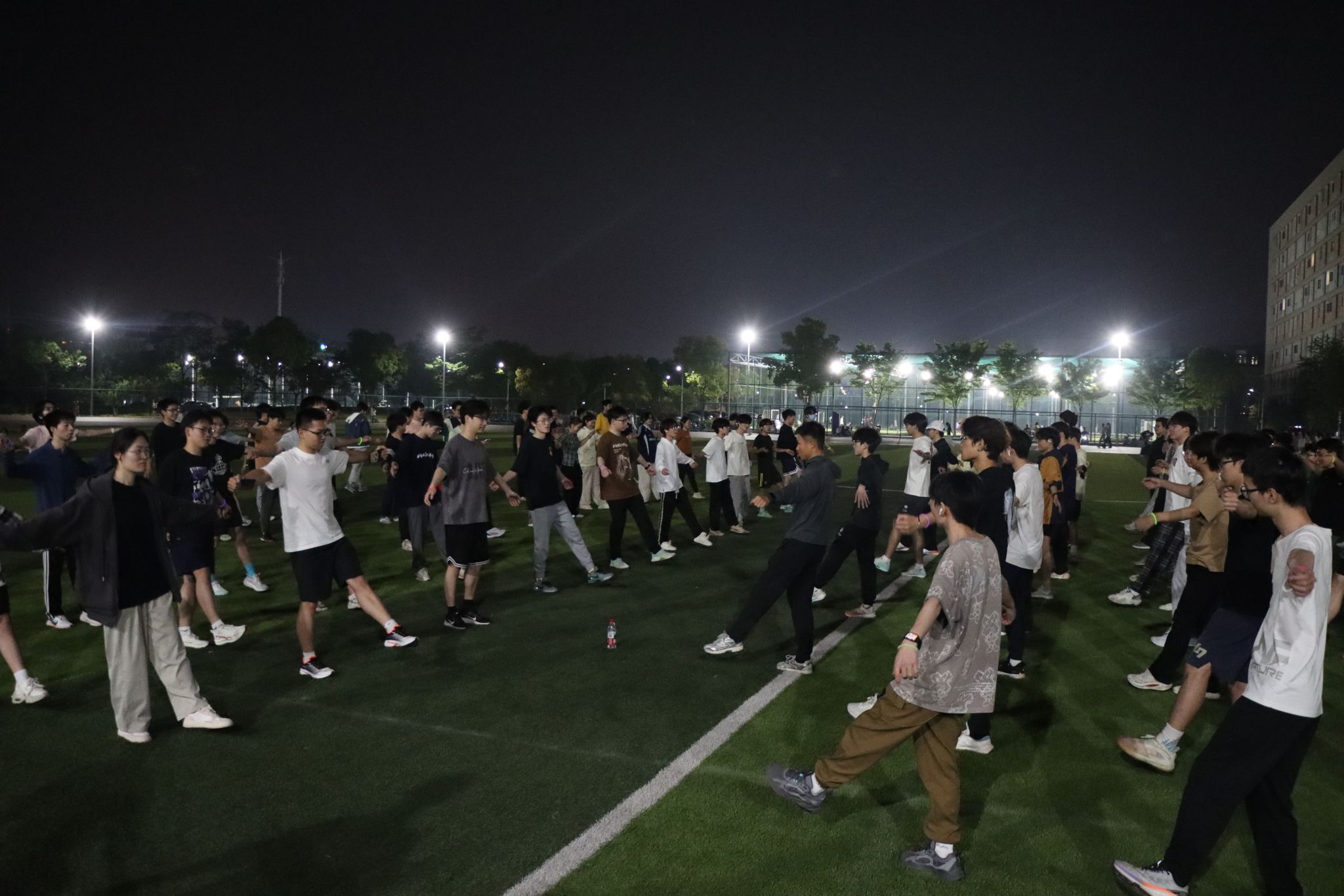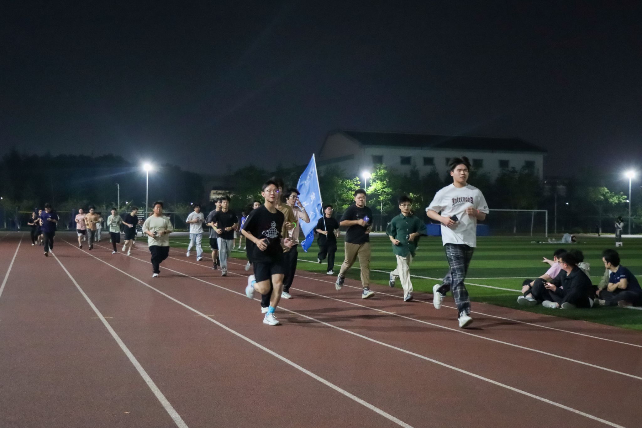 活动设置热身操环节,全体师生在专业体育老师的带领下通过拉伸、跳跃等动作激活身体机能。随后,大家伴随着激昂的音乐,手戴荧光棒,迈着坚定有力的步伐,沿着跑道有序出发,开始青春夜跑,运动场化作一片跃动的“星海”。同时,多名优秀校友专程从各地赶回母校,与在校师生一同奔跑,用实际行动诠释了“机械精神”的代代相传,激励年轻一代学子以更加积极的态度面对学习和生活。
