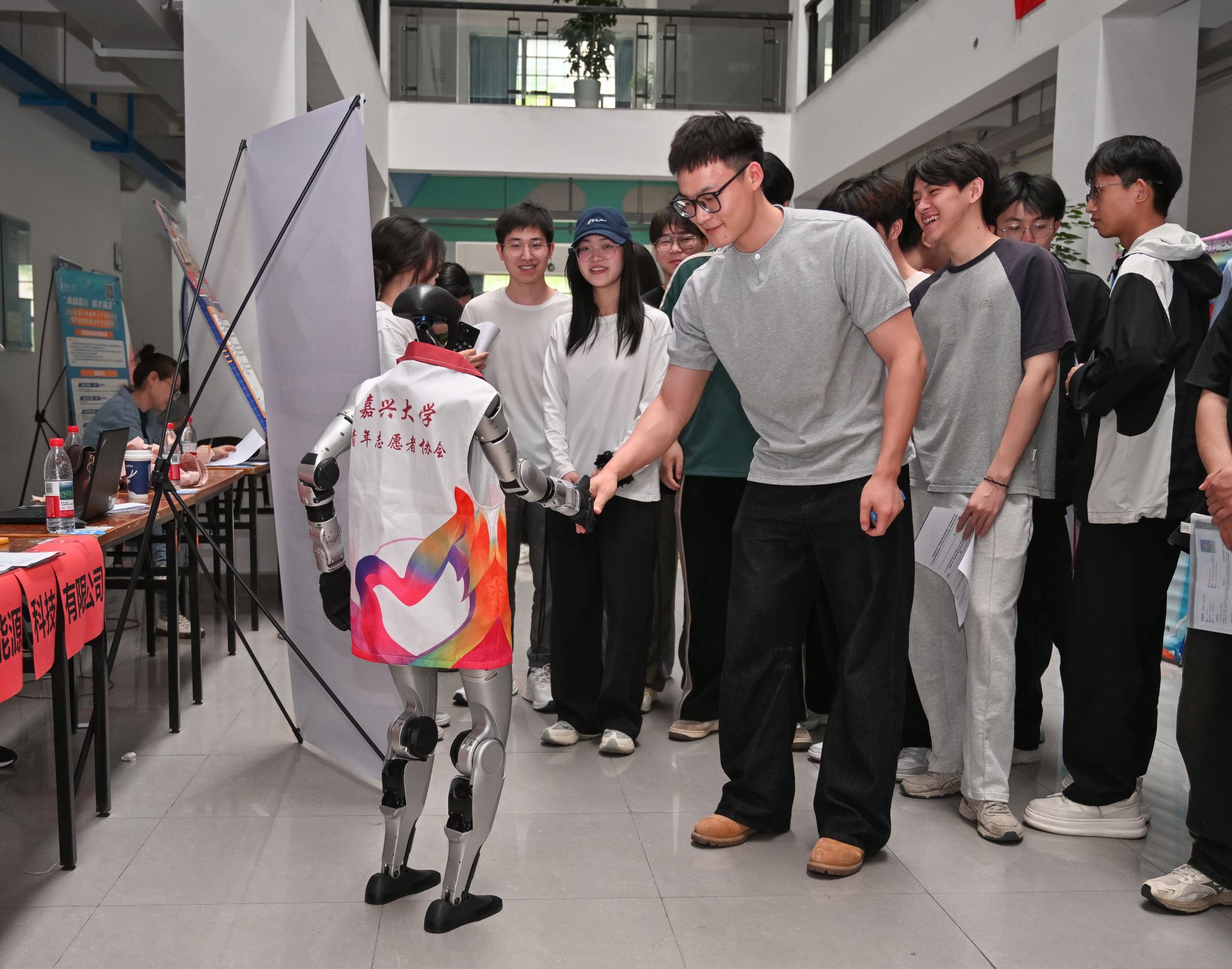 学院领导深入招聘会现场,与用人单位及毕业生亲切交谈,实地调研企业用人需求,与毕业生亲切交流,为求职学生提供精准对接和指导。现场人头攒动,气氛热烈,浙江和炎能源科技有限公司带来的宇树科技人形机器人成为会场一大亮点,为招聘会增添了科技魅力。机器人展示了行走、挥手问候、握手等基本动作,展现出灵活的动态性能。学生们纷纷围上前,或试探性打招呼,或伸手触摸。机器人工程专业的杨同学表示:“这次互动体验让我对智能机器人领域产生了更浓厚的兴趣,也更加明确了自己的职业发展方向。”